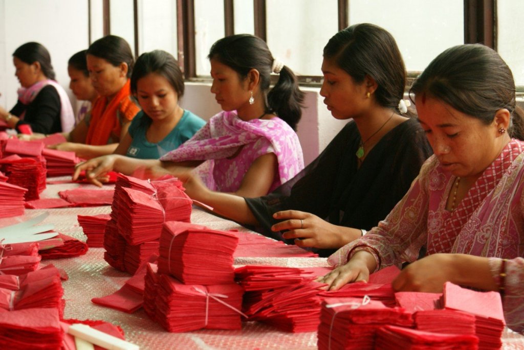 Por ejemplo en The Body Shop los artesanos de la comunidad del Himalaya Bansbari confeccionan a mano sus bolsas y cajas de regalo desde el año 1989, a base de papel reciclado de origen sustentable, telas de algodón y hojas de plátano. El papel se hace mojando fibras vegetales con agua. La pulpa se deja en grandes platos de madera y se extrae el agua. El papel mojado se seca al sol y se corta a medida. Es un arduo trabajo que simplemente no podemos dejar de comunicar o que pase desapercibido.