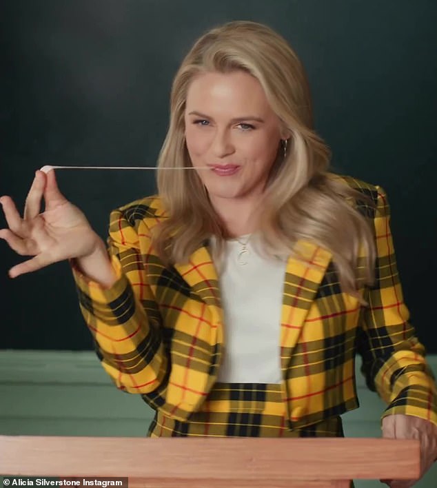 La popular actriz Alicia Silverstone, de 46 años, viralizó en redes sociales uno de sus papeles más icónicos en un nuevo vídeo compartido en su instagram el pasado martes 31 de enero, vistiendo con el traje de falda a cuadros amarillo que se puede reconocer al instante, tal y como lo usó su personaje Cher en el clásico filme Clueless de 1995, jugó con una bioma de mascar, al igual que lo hizo su personaje durante una escena en «la que estaba dando un discurso en clase.»Clueless«. (cinta disponible en Netflix «Ni Idea» (Clueless)