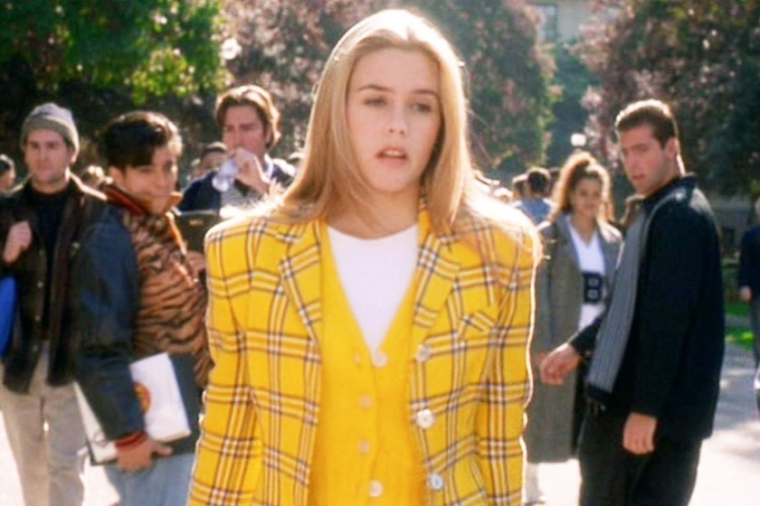 En el vestuario de la película “Clueless” el outfit blanco de Cher era realmente un Calvin Klein. Y en la escena del asalto el outfit era Azzedine Alaïa. En el film destacan además mini faldas en estampado escocés y medias bucaneras.