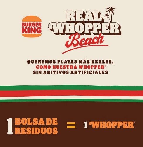 ¿De qué se trata Real Whopper Beach? En las citadas playas existe un Truck Burger King, en los que debes solicitar una ecobolsa Real Whopper Beach, luego debes recolectar todos los elementos artificiales que encuentres contaminando la playa, y una vez culminado este ejercicio: entrega tu bolsa de desperdicios en el truck y canjea tu cupón válido para un #Whopper gratis (sin ingredientes artificiales) además de merchandising de la firma.