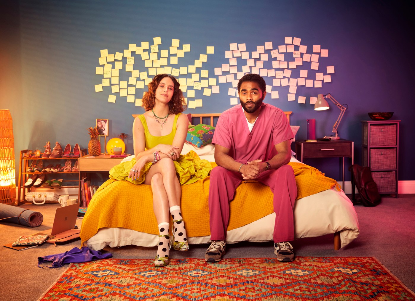 Jessica Brown Findlay («Brave New World», «Harlots», «The Hanging Sun») y Anthony Welsh («Pure», «Master of None», «The Great») interpretan a Tiffany y Leon, dos londinenses con problemas de liquidez. veinteañeros que comparten cama. El problema es que Tiffany y Leon nunca se conocieron y, si su plan funciona, nunca lo harán. Recuperándose de una relación controladora, Tiffany pasa sus días ganando el salario mínimo por una apreciación mínima en un sitio web de noticias virales, mientras que Leon trabaja en el turno de noche en un hospicio y recibe consejos de vida de un adolescente con una enfermedad terminal mientras intenta liberar a su hermano encarcelado injustamente. Pero, a medida que los Post-it Notes comienzan a volar y cada uno se ve atraído inesperadamente por la vida compleja y desordenada del otro, una atracción evoluciona hacia atrás.