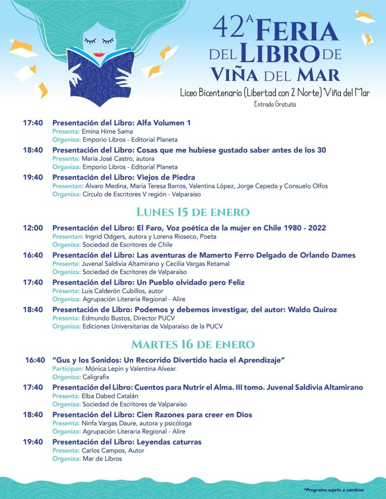 Programa por Día Feria Libro: Viña del Mar