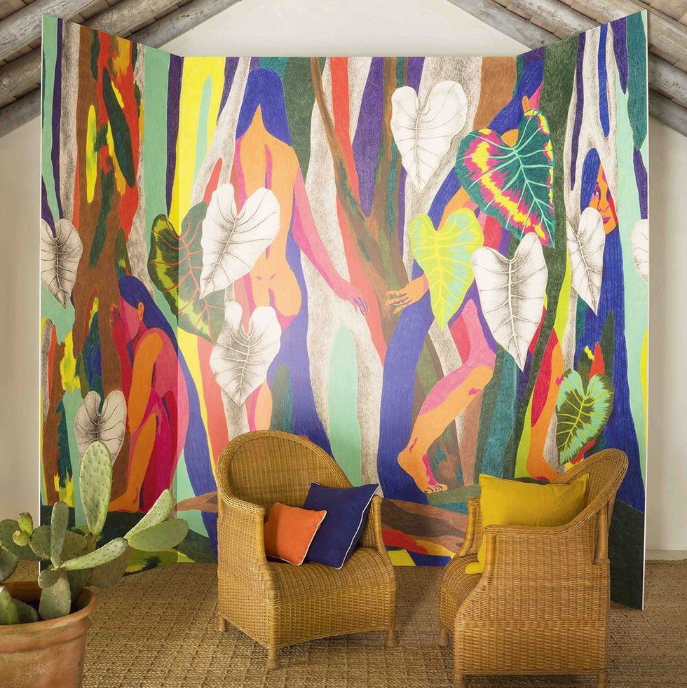 Una de los exponentes de la moda surf es Yiling Changues, ella es una ilustradora que arte creó diseños para una línea de revestimientos de pared, telas y alfombras de la firma de decoración francesa de lujo Pierre Frey,
