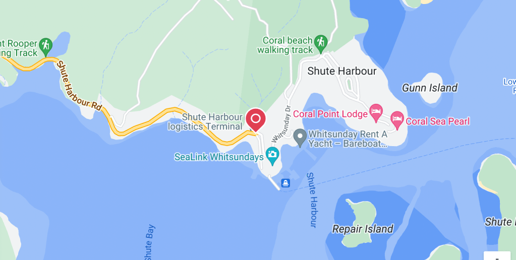 Shute Harbour, ubicado a sólo 10 km al este de Airlie Beach, es una pequeña comunidad residencial y una instalación portuaria para excursiones y traslados a las islas Whitsunday. Shute Harbour Marina, también conocida como Shute Harbor Marine Terminal, es un excelente lugar para pescar varios tipos de peces tropicales y calamares de Pentecostés.