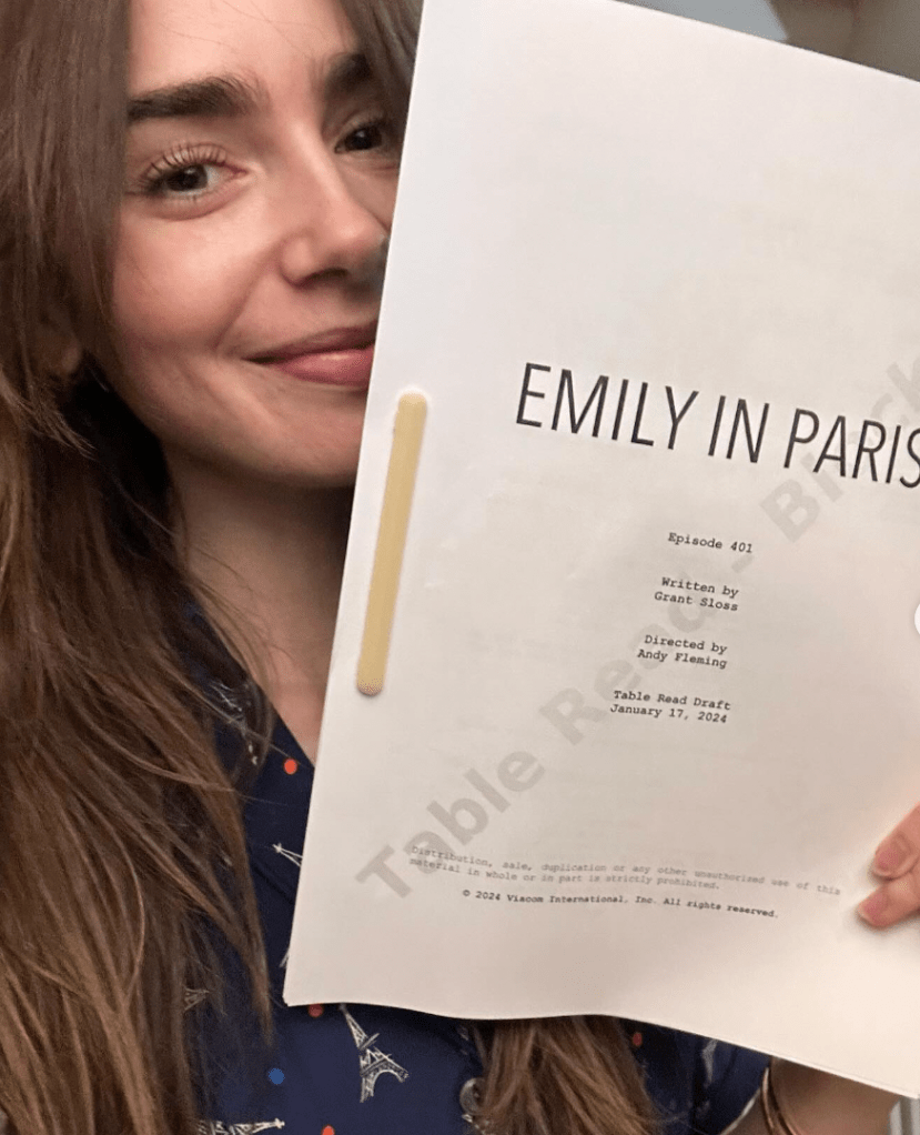 Si bien el pasado 17 de enero se realizó la lectura de guion de la cuarta temporada de «Emily en Paris», según se aprecia en el documento que sostiene la actriz. En esta temporada tendremos a Kevin Dias, quien interpreta a Benoit (un flirteo amoroso de Mindy); y Lucas Bravo, el chef Gabriel.